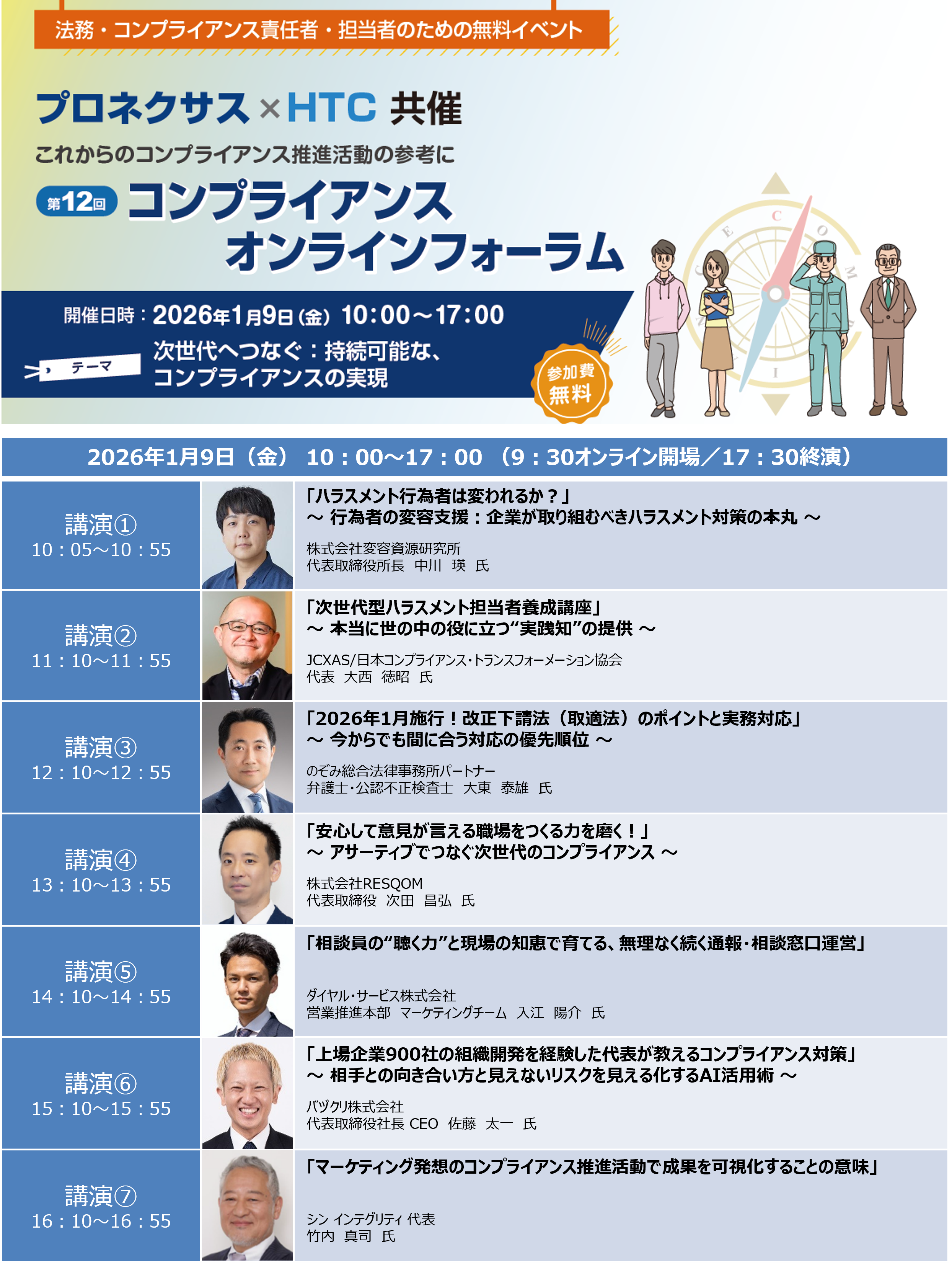 | 協賛 | 株式会社アスマーク、ダイヤル・サービス株式会社、一般社団法人 日本ハラスメントリスク管理協会、バヅクリ株式会社、レクシスネクシス・ジャパン株式会社、JCXAS/日本コンプライアンストランスフォーメーション協会 |
